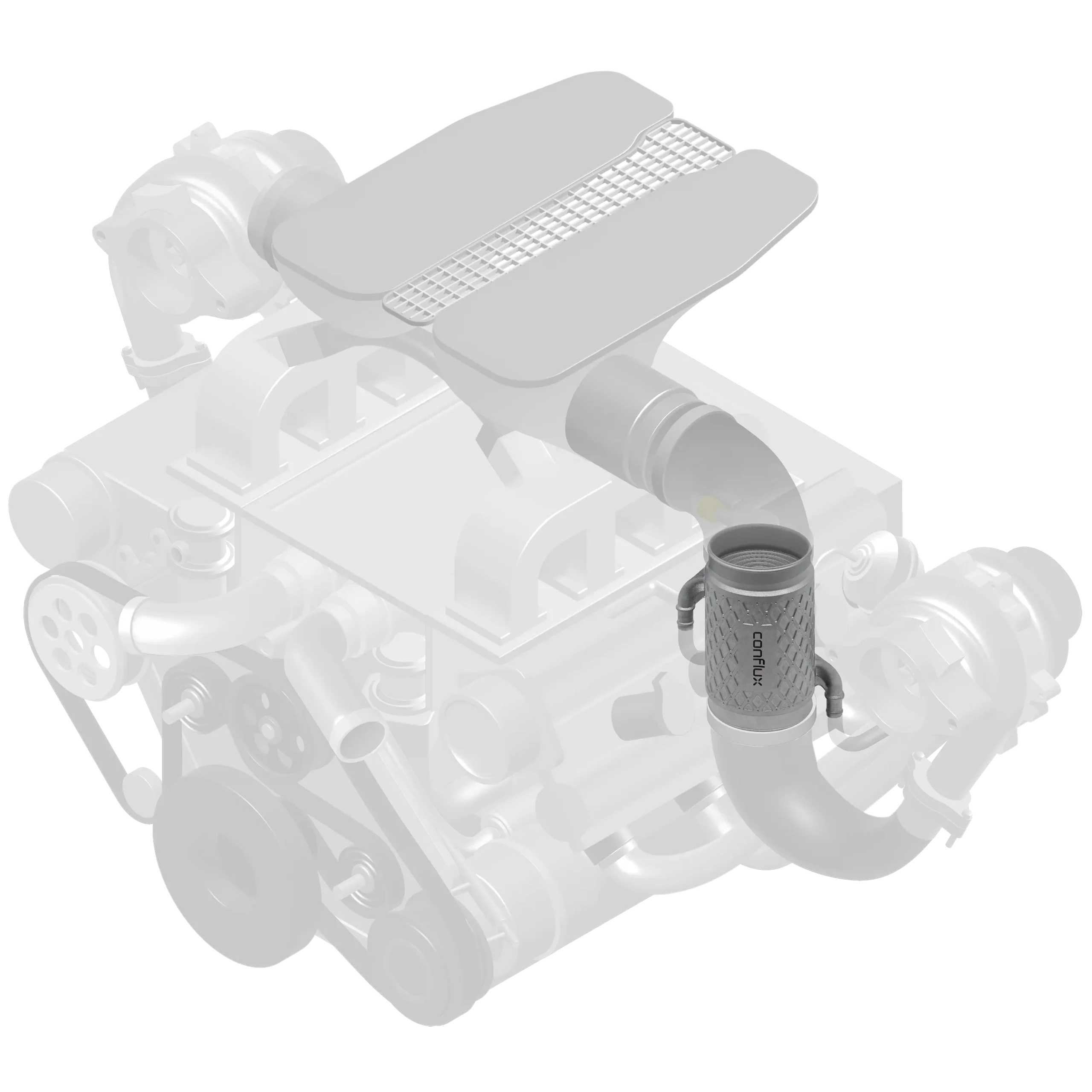 Conflux’s Water Charge Air Coolers are easily adapted to enable seamless integration into high-performance engines. Additive manufacturing enables ports, connectors, and manifolds to be printed directly with the Conflux Core™ , creating plug-and-play connections to both charge-air and coolant circuits in a compact, monolithic design. Internal geometries are fully configurable allowing for customized fluid flow paths.